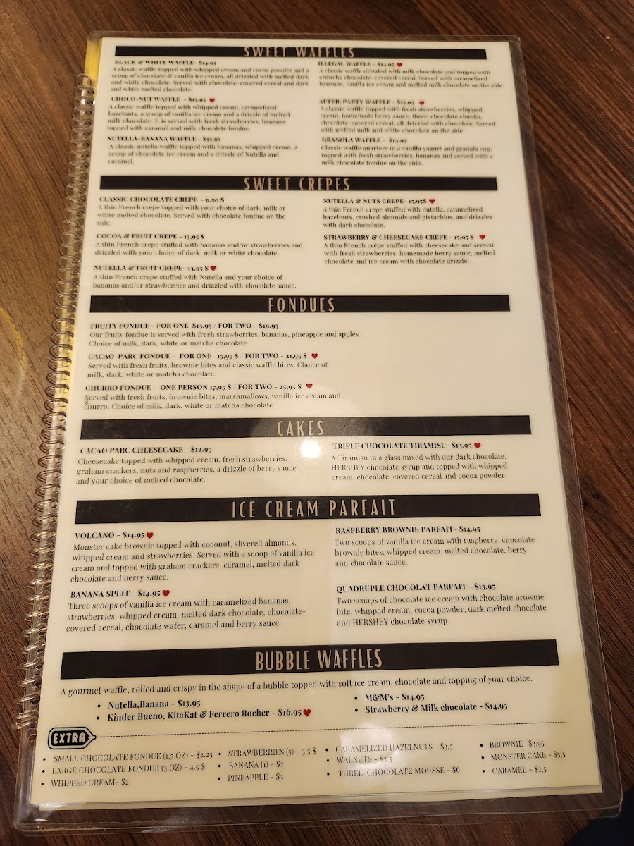 At Cacao 70 Eatery, located in the heart of Montreal, chocolate reigns supreme. This delightful eatery invites guests into a cozy ambiance, offering an extraordinary fusion of Mediterranean savory dishes and delectable chocolate-centered delights. Signature treats like the Choconut Waffle, drizzled with luscious melted chocolate, and rich hot chocolate prepared from melted chocolate are highlights that tantalize the taste buds. Customers rave about the warm, inviting atmosphere and exceptional service, making every visit a true indulgence. Whether you're savoring a luscious dessert or sharing a fondue plate, Cacao 70 Eatery is a must-visit for any chocolate lover longing for sweet escape.